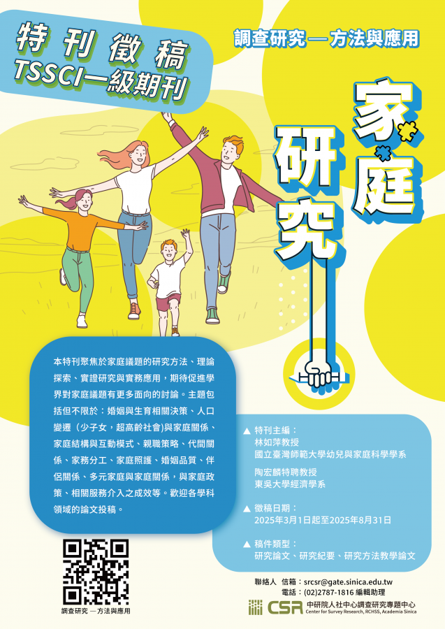 中研院人社中心《調查研究—方法與應用》徵稿中(至8月31日)