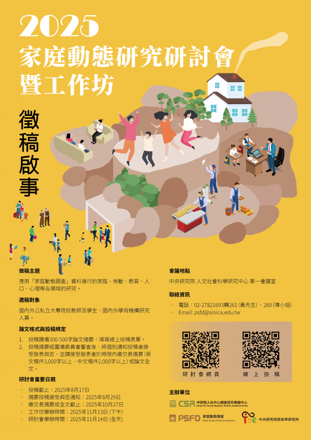2025家庭動態研究研討會暨工作坊徵稿啟事(8/17止)
