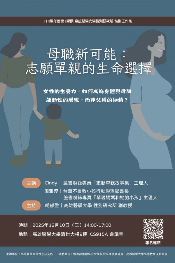 高醫大性別所 12/10 「母職的新可能:志願單親的生命選擇」座談會