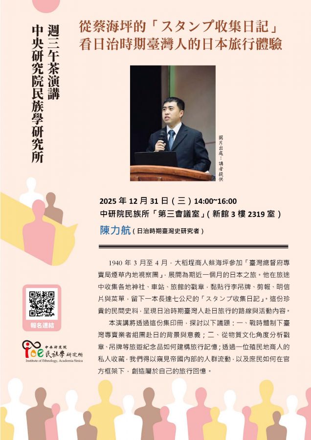 中研院民族所 12/31 從蔡海坪的「スタンプ收集日記」看日治時期臺灣人的日本旅行體驗 演講