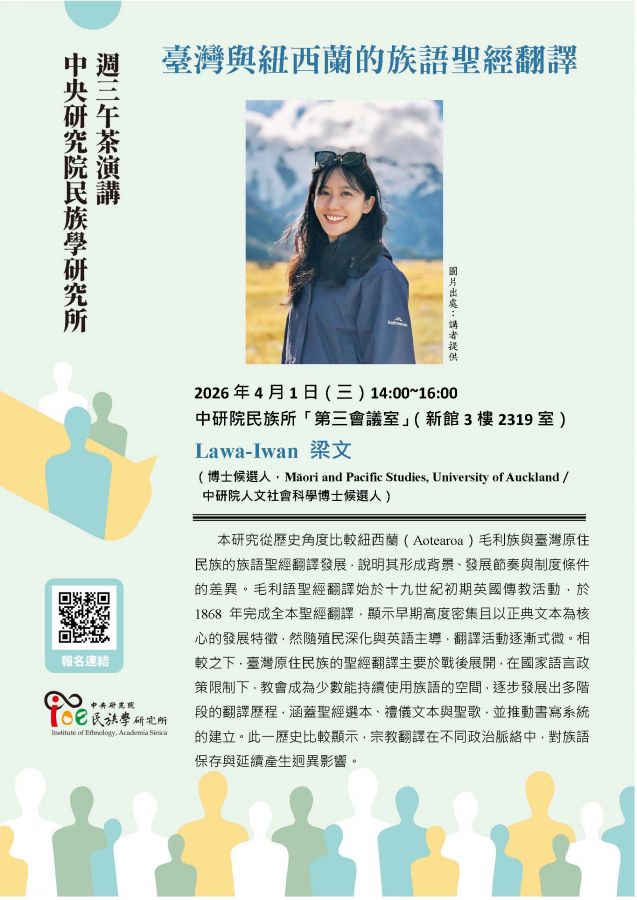 中研院民族所 2026/04/01〈週三下午茶〉【臺灣與紐西蘭的族語聖經翻譯】