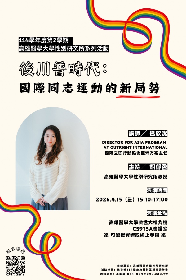 高醫大性別所學術演講活動: 後川普時代:國際同志運動的新局勢(4/15)