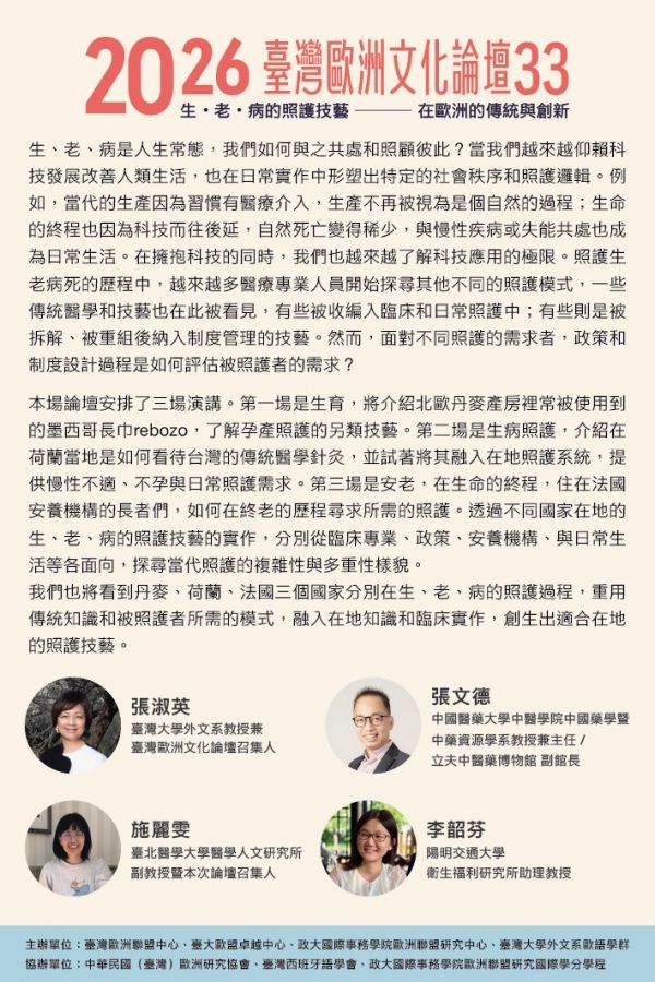 臺灣歐洲文化論壇 33「生・老・病的照護技藝:在歐洲的傳統與創新」