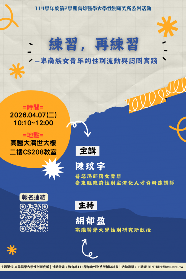 高醫大性別所學術演講: 練習,再練習——卑南族女青年的性別流動與認同實踐(4/7)