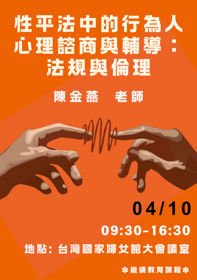 台灣輔導與諮商學會--性平法中的行為人心理諮商與輔導:法規與倫理(3/24截止)
