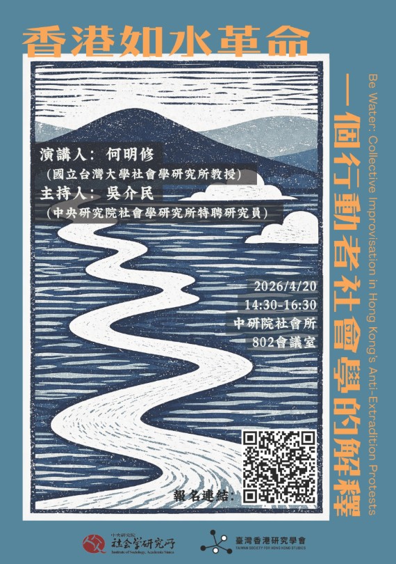【主辦單位】中央研究院社會學研究所、臺灣香港研究學會