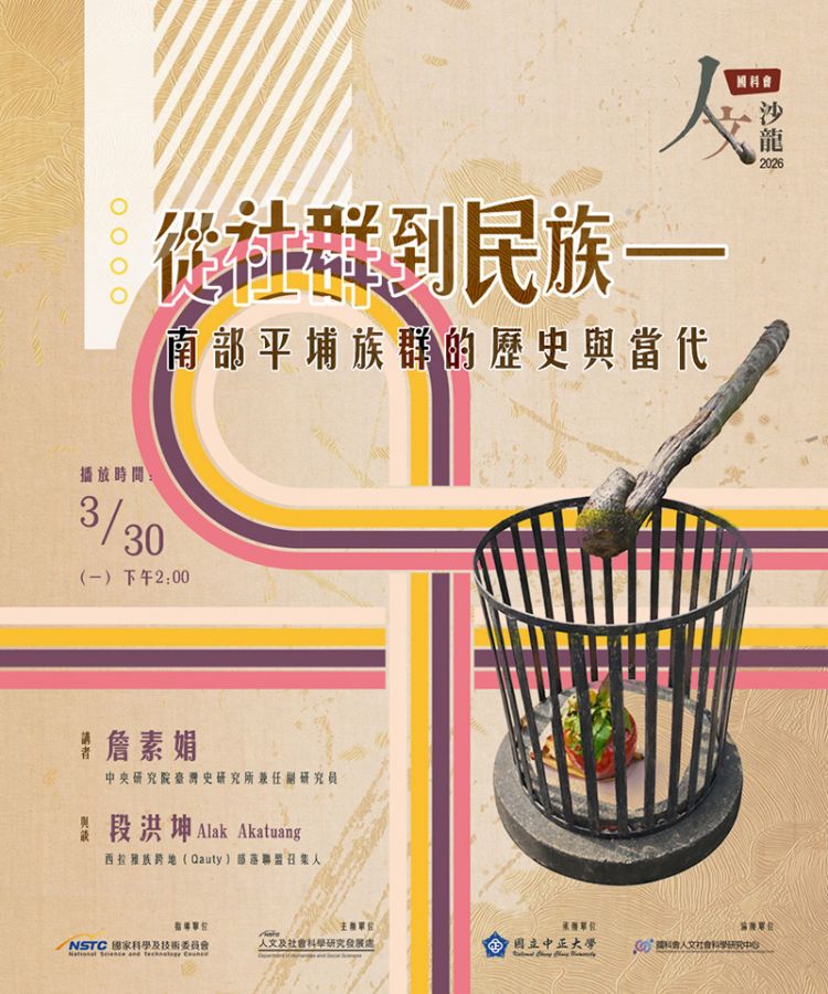 國科會人文沙龍---詹素娟教授演講:【從社群到民族:南部平埔族群的歷史與當代】 (3/30)