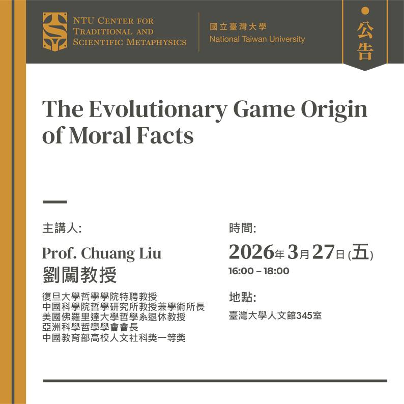 台大哲學系學術演講: The Evolutionary Game Origin of Moral Facts (3/27)