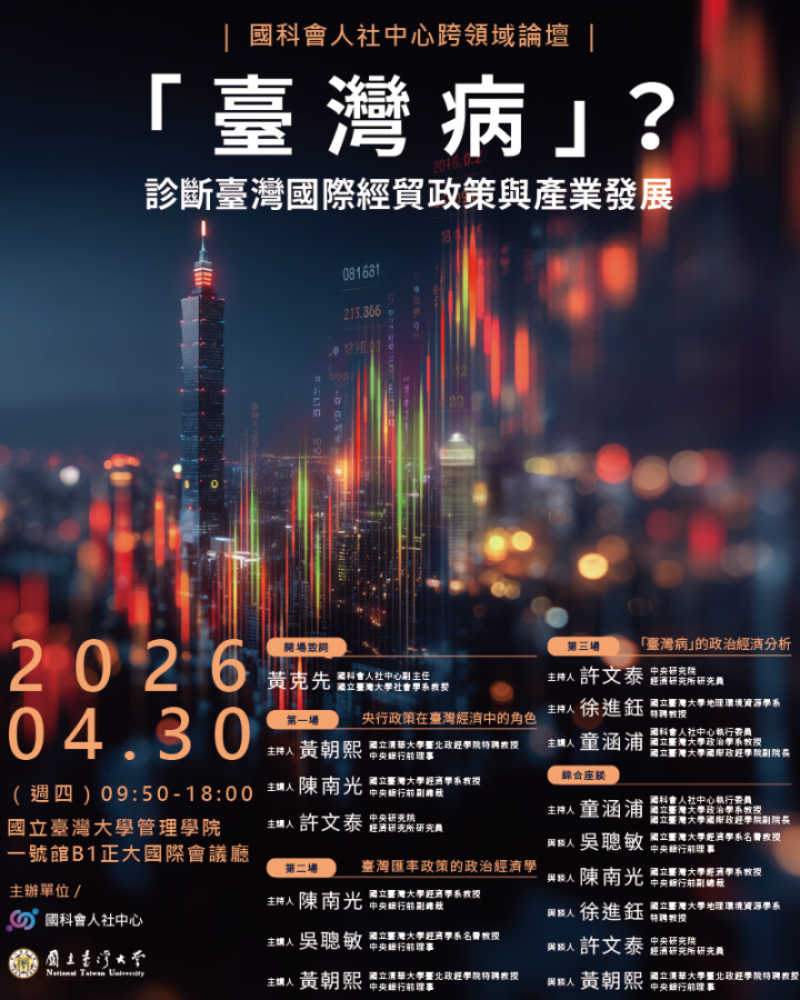 國科會人社中心:「臺灣病」?診斷臺灣國際經貿政策與產業發展跨領域論壇(4/30)