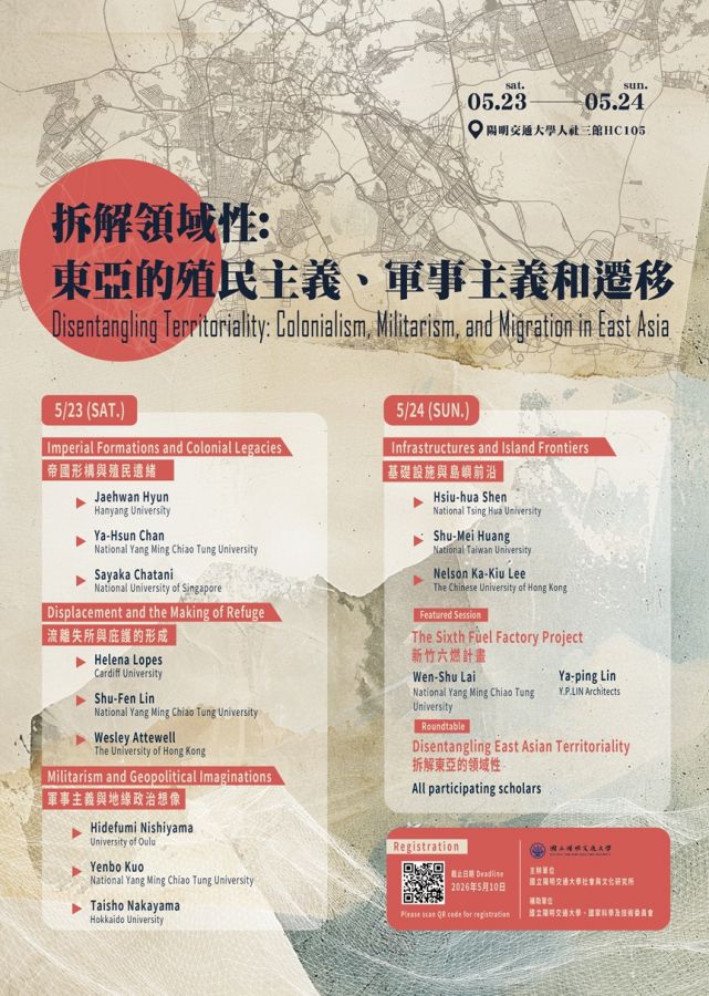 This international conference explores the shifting dynamics of territoriality in East Asia through the lenses of colonialism, militarism, and migration. Rather than treating “East Asia” as a bounded geographic unit, it approaches the region as a space simultaneously shaped by and exceeding the colonial and postcolonial cartographies instituted by empires, nation-states, regional security alliances, and capitalist frontierization. From imperial expansion and wartime occupation to Cold War divisions and post–Cold War realignments, territorial regimes in East Asia have been continually constituted and reconfigured through diverse infrastructures—legal, economic, military, and logistical—as well as through various modes of knowledge production.