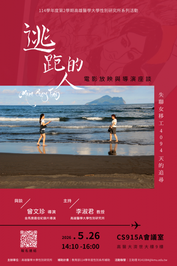 高醫大性別所系列活動:《逃跑的人》電影放映暨導演座談(5/26)